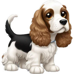 Cocker spaniel with big brown and white SPOTS and a Mohawk emoji