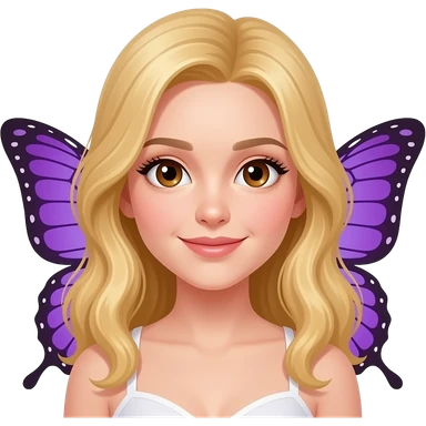 please make a blonde young woman with brown eyes and butterfly wings, the wings are purple emoji