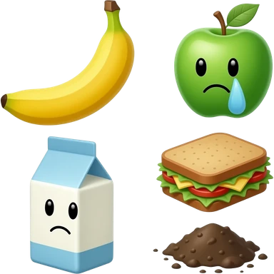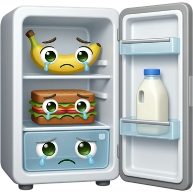 fridge with brown banana apple sandwich not happy sad green smells crying cute smelly face milk dirty emoji