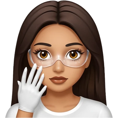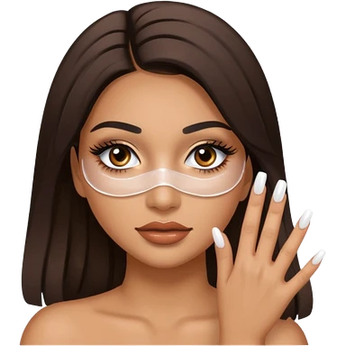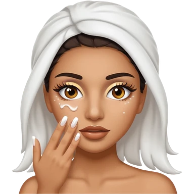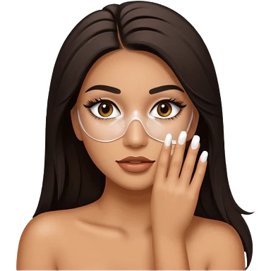 Baddie Latina emoji with fake lashes and white nails with white liquid covering her face emoji