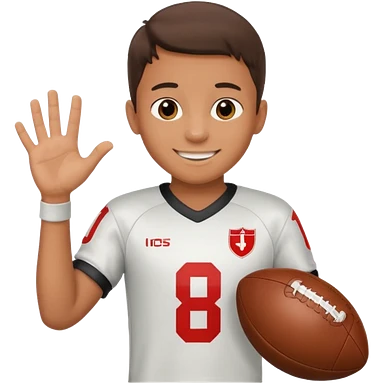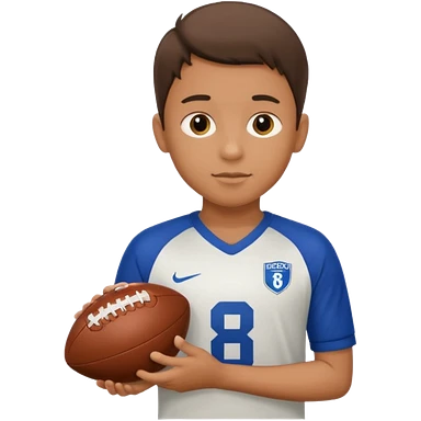 a boy having a football ball next to his hand wearing a football jersey emoji