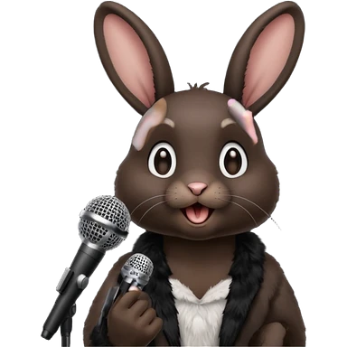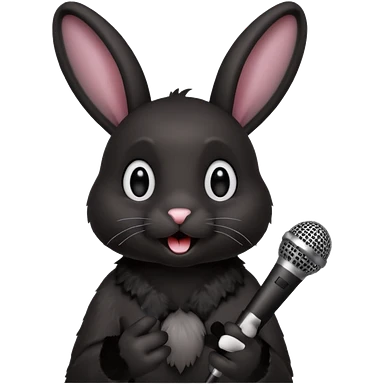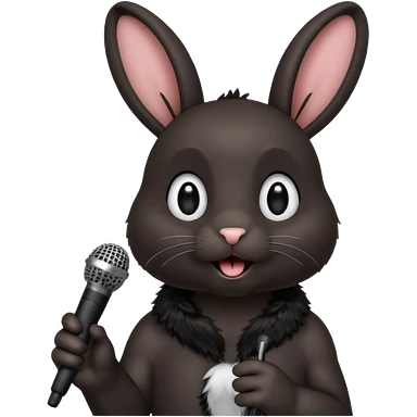 black bunnie singing , holding mic emoji