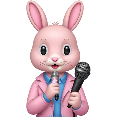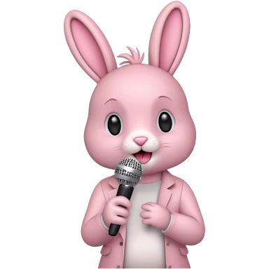 pink bunnie singing , holding mic emoji