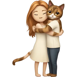 small calico cat hugging long brown hair white woman emoji