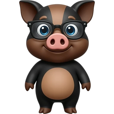 black and brown pig wear glasses standing pose front view emoji