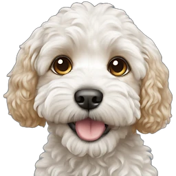 A white cavapoo dog with light brown ears and a few light brown spots on his chest and head emoji