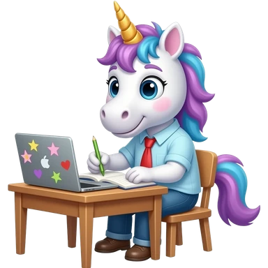 A unicorn doing homework emoji
