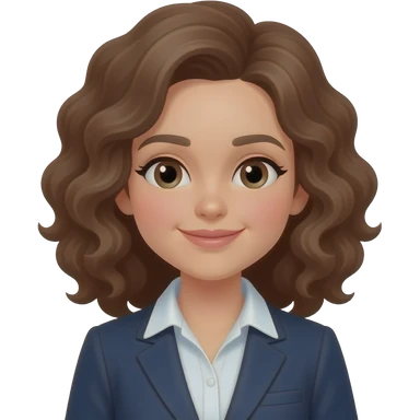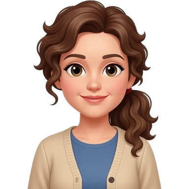 female teacher with long curly hair, fair skin, brown eyes, oval face emoji