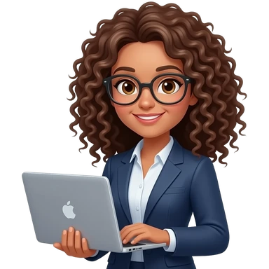 Brown curly hair female teacher with laptop emoji | AI Emoji Generator