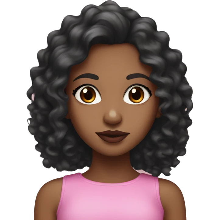 Brown Girl with curly black long hair and black eyes with pink lipstick and eyeliner emoji | AI Emoji Generator