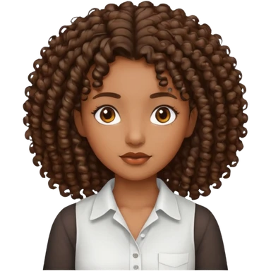brown girl with curly hair, brown eyes and brown lip linee emoji