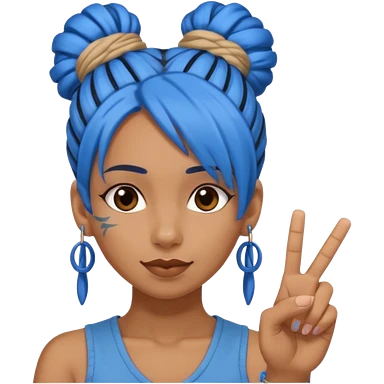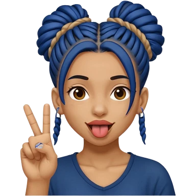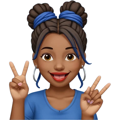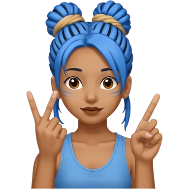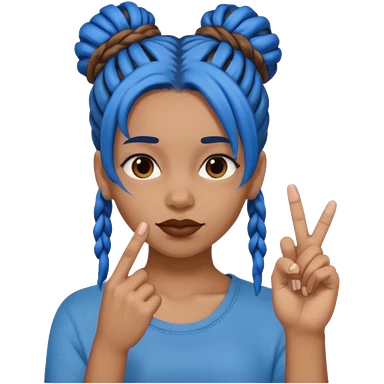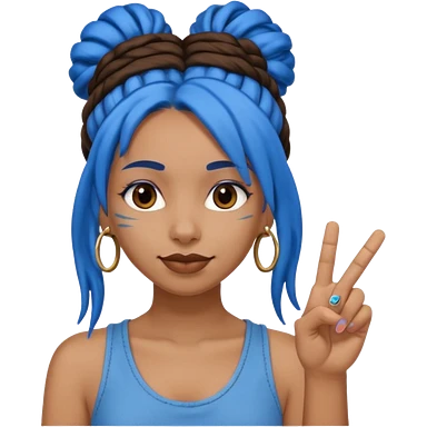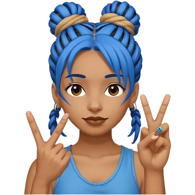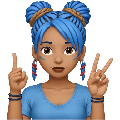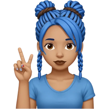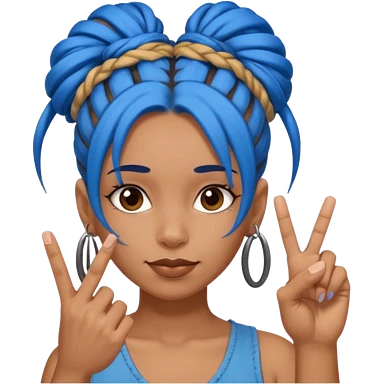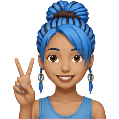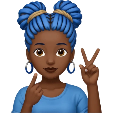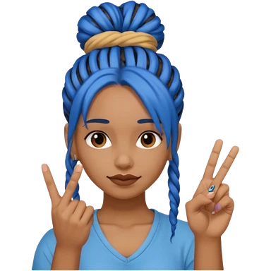 brown girl with blue dreads in a bun giving peace sign and middle finger emoji