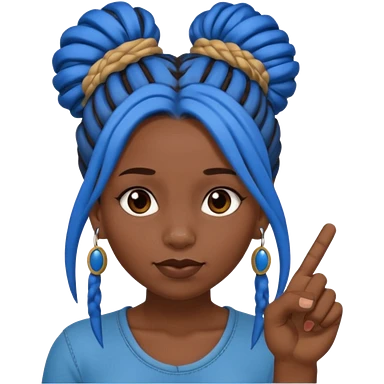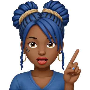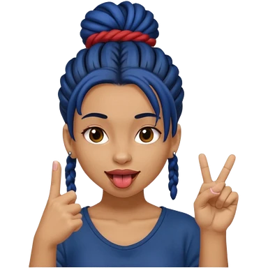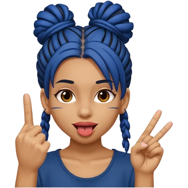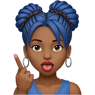 brown girl with dark blue dreads all in a bun with tongue out holding up middle finger emoji | AI Emoji Generator