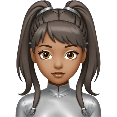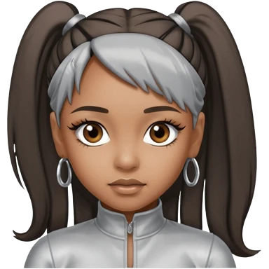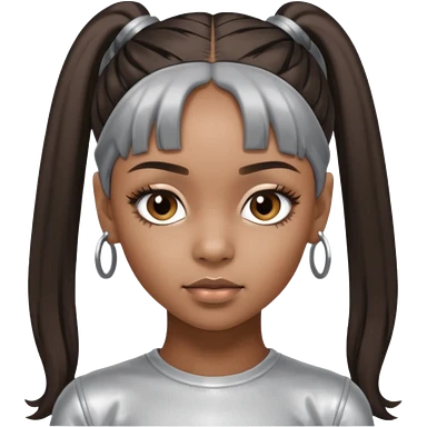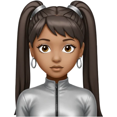 Left Eye from TLC with long dark brown ponytail hair, silver outfit emoji