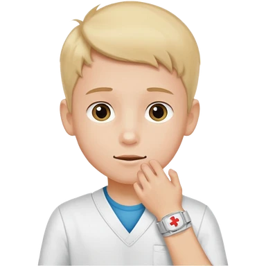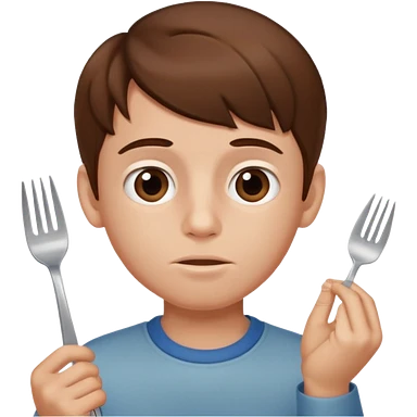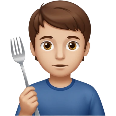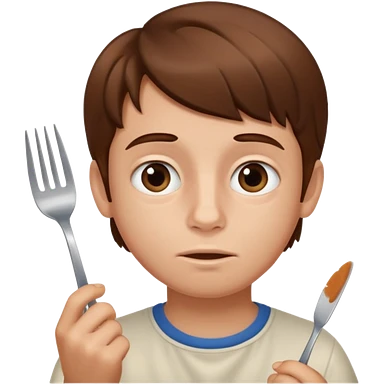 Brown hair boy allergic to soy, swollen face, fork in the hand emoji | AI Emoji Generator