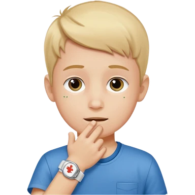 Brown hair boy allergic to soy, swollen face, fork in the hand emoji