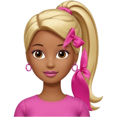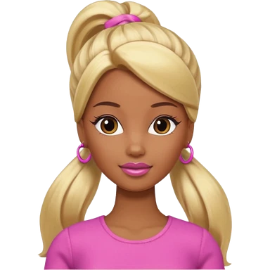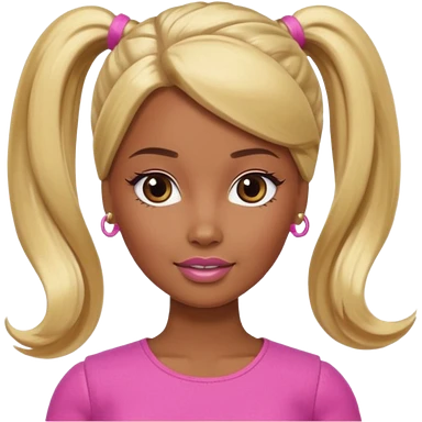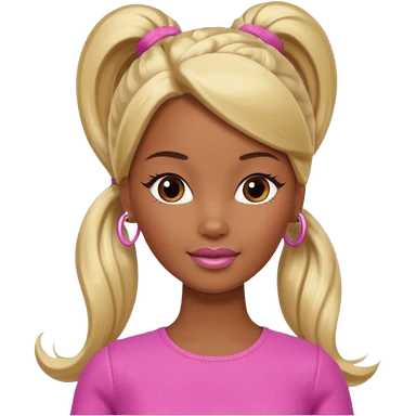 Brown skin blonde hair Barbie with hair in ponytail emoji