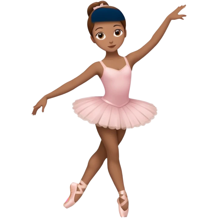 little girl tan skin with curly brown hair and brown eyes wearing a light pink ballet outfit doing a ballet pose emoji