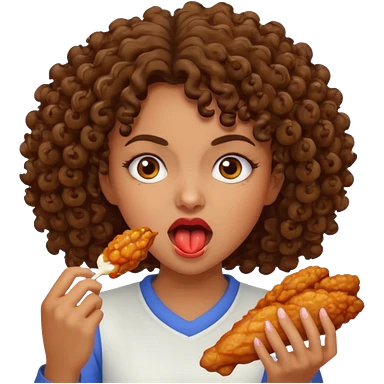 Brown hair girl eating chicken wing emoji | AI Emoji Generator
