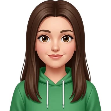 Realistic long straight Brown hair girl green hoodie emoji