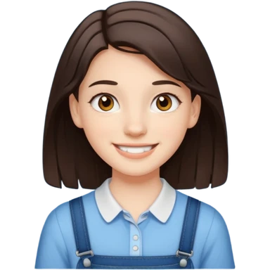 Girl with brown hair smiling with braces and blue shirt emoji