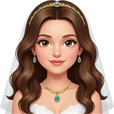 Long brown wavy hair, hazel eyed girl wedding emoji