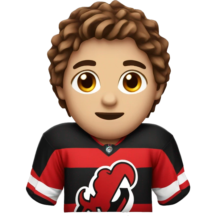 brown hair hockey player with devils jersey emoji | AI Emoji Generator