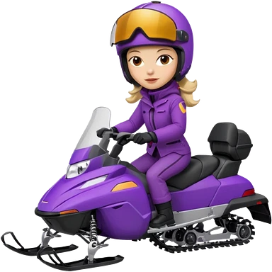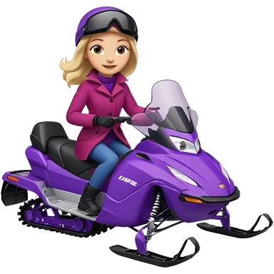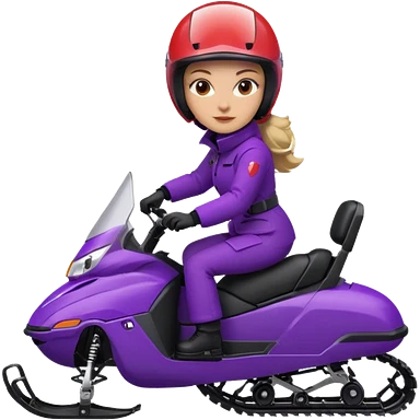 Brown hair Woman wearing red coat on purple and yellow snowmobile emoji | AI Emoji Generator