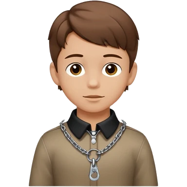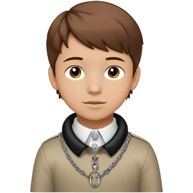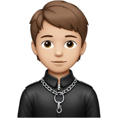 brown-haired boy, young, satisfied look, collar and leash around his neck, minimal bdsm clothing, emoji | AI Emoji Generator