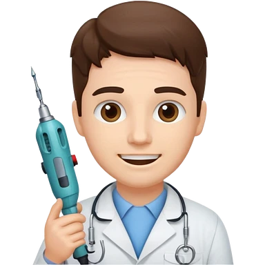 Brown haired female dentist holding drill emoji | AI Emoji Generator