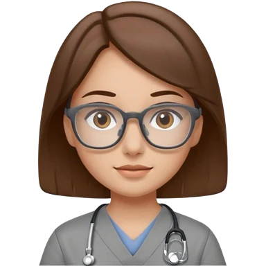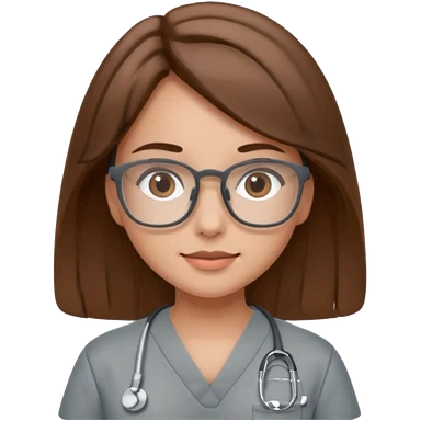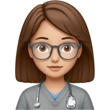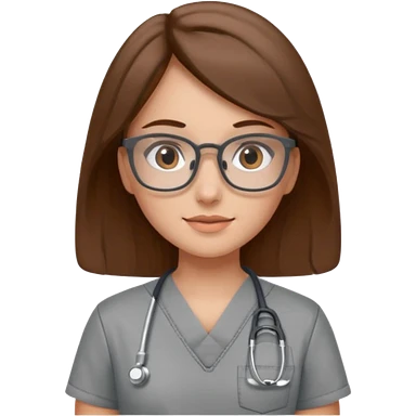 brown haired girl with grey scrubes and brown glasses squre emoji