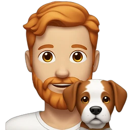 Brown haired white man with ginger beard, blue eyes and a gappy smile emoji