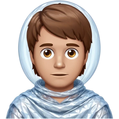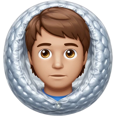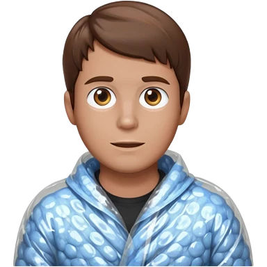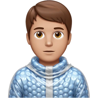 Brown haired man wrapped in bubble wrap emoji | AI Emoji Generator