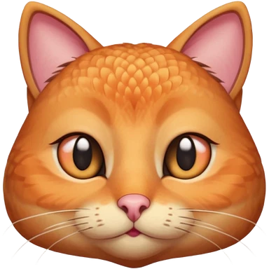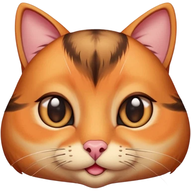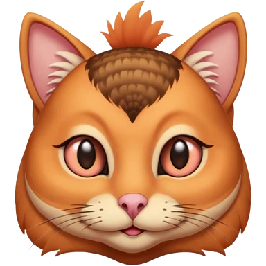 A shy but handsome turkey cat with a uni-brow batting his lashes and blushing emoji