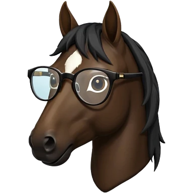 Dark brown horse with dark brown mane and small white marking on top of head emoji