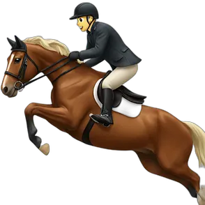 Brown horse jumping over jump with rider emoji | AI Emoji Generator