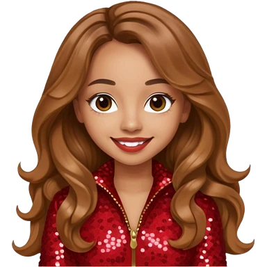 Jade from Bratz with long black ponytail hair, light skin, brown eyes, red sequin crop top emoji