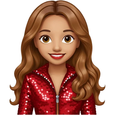 Jade Thirlwall from Little Mix with long light brown hair, red sequin outfit emoji