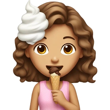 Girl approximately 14 years with dark brown hair and with ice cream in her hand emoji