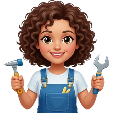 brown curly hair woman with clean tools emoji