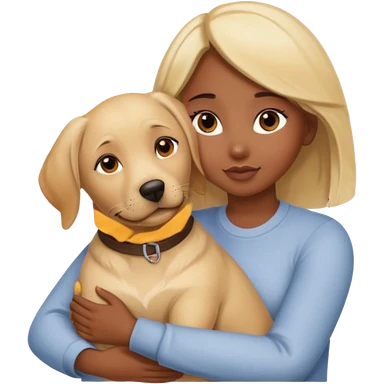 A black girl with brown eyes hugging her blonde Labrador lady emoji