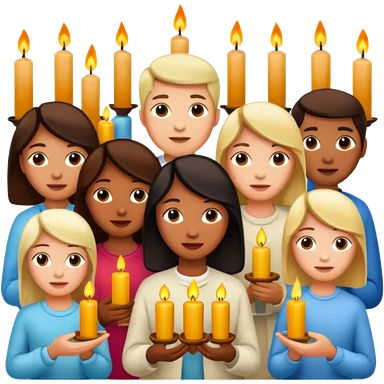 brown long haired white women with white gown and advent wreath with 5 candles on the head and praying hands emoji | AI Emoji Generator
