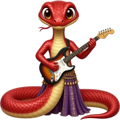 venomous snake with red medium length that plays an electric guitar with bellydance skirt emoji
