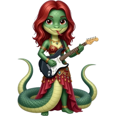 venomous snake with red medium hair length that plays an electric guitar with bellydance skirt emoji