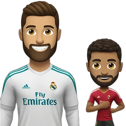 little brown man with a beard next to the great Cristiano Ronaldo playing football in the real madrid emoji
