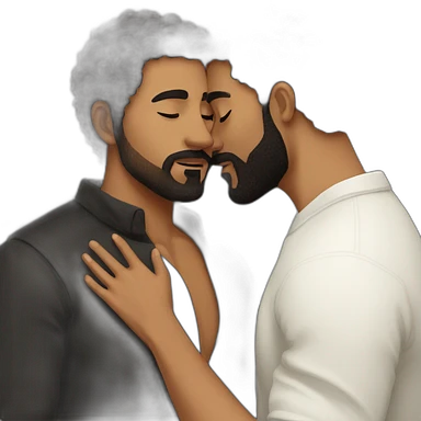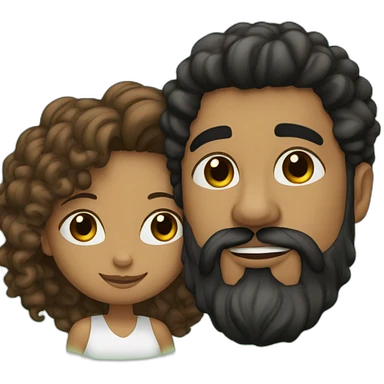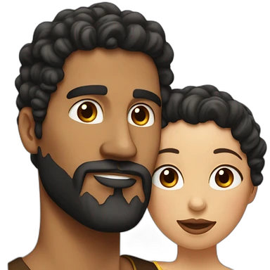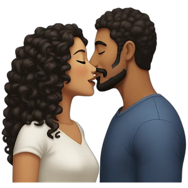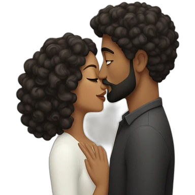 Brown man with a smooth black hair and a black beard kissing a white woman with long brown curly hair emoji | AI Emoji Generator
