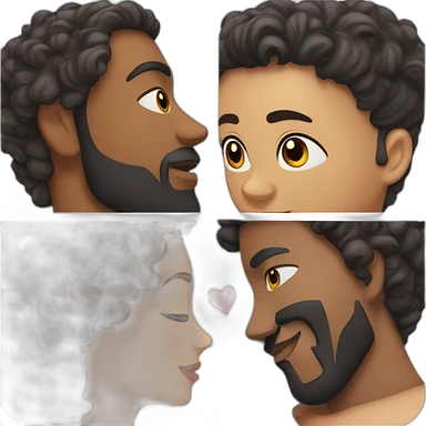White man with a smooth black hair cut fade and a black beard kissing a black woman with long brown curly hair emoji