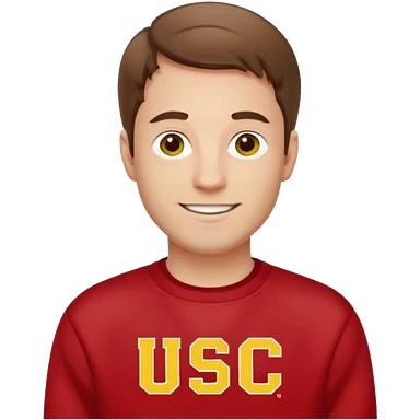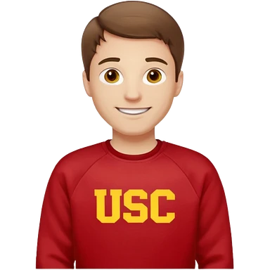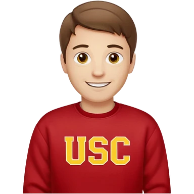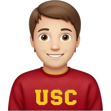 happy pale white man with brown hair in a red sweatshirt with USC in yellow letters emoji