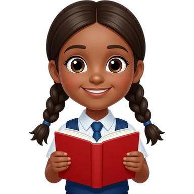 brown skin not too much dark skin girl student close up and hold vibrant red book in front of their chest and two sided braid emoji
