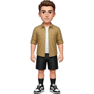 Brown hair frckles black shorts shirt sock black and white nike shoes emoji
